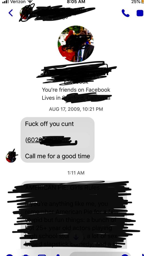 I’ll go through them quick: there’s Annie (Madison Pettis), ostensibly the protagonist of the story. There’s really nothing about her, except that she’s really hot and still a virgin. They make a big deal about this. The first scene has her crawling through the mud so she can suck off her boyfriend using an absolutely disgusting dental dam. She gets a wedgie on a fence and there’s a long shot of her bare ass. I’m just trying to give you a sense for the level of comedy here. The best part about her is that her Dad is an absolute smokeshow- easily the hottest person in the movie. Then there’s Kayla (Piper Curda), the most sexually abusive of the bunch, and that’s saying something. She’s crazy, she’s Asian, and she’s selfish as fuck. I specifically noted 6 separate instances of predatory behavior from Kayla. Next is Michelle (Natasha Behnam), the least problematic. Her only thing is that she’s always got vibrators and dildos and stuff falling out of her holes all the time. I got my first real laugh of the whole movie when she was introduced- jerking it to a JFK speech on the TV. She’s the fat one, which seems like a woke choice until she does a Kevin James-style fat fall against a locker about halfway through (my second laugh of the movie). Finally there’s Stephanie Stifler (Lizze Broadway), I guess related to the original Stifler, maybe. She’s such an asshole that she pelts a guy with a fucking lacrosse ball in the head for absolutely no reason then laughs about it. And then spends the rest of the movie literally stalking this dude.