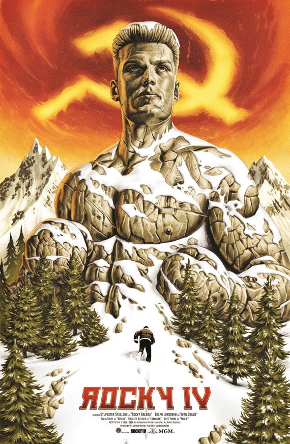 MARGETIS = BLUE ; PALLADINO = RED Hands down, my favorite of the 80s Rocky sequels, mostly because it’s so dang fun. It drops the slow burn of the first two movies, and never attempts to be as serious or realistic. Sure, Burgess Meredith dies and that’s a bummer and a half, but that only inches Carl Weathers’ Apollo Creed closer to Rocky Balboa as his trainer. In a wonderfully fun bromance including the shortest short shorts I’ve seen outside of a drag bar, Rocky and Apollo become best buds and it’s awesome. Even more so than Rocky and Adrien, I think the core relationship of this series is between Rocky and Apollo. These two would die for each other and there’s a deep mutual respect and understanding. Rocky and Apollo understand each other because they are each other. Sure, Adrien and Rocky love each other, but she’ll never understand Rocky and his motivations the way Apollo does.