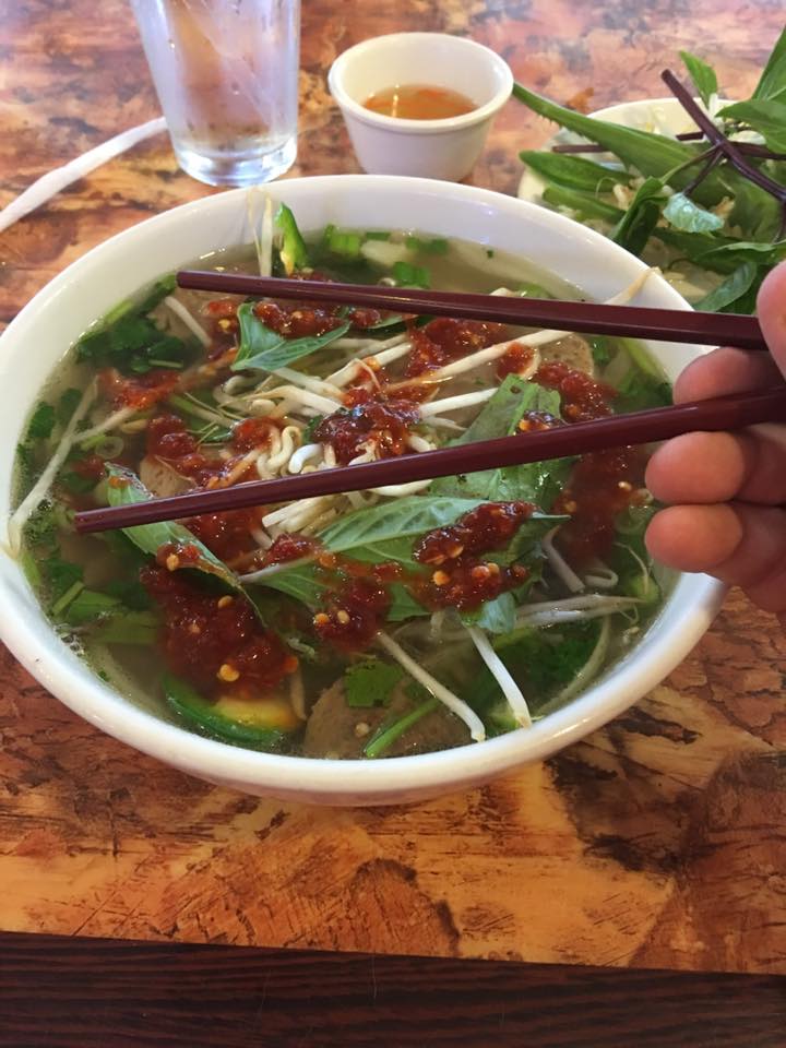 Finally, I get seated at a big honkin’ table and order without even looking at the menu. Menus are for strangers, Da Vang‘s is my home. I tweedle on my phone but alas none of my friends are blowing the fucking lid off my reality on Twitter or Instagram. I peer outside to see an almost hyperventilating man in a Blue Lives Matter t-shirt, pacing outside. He comes into the restaurant and attempts to infiltrate the kitchen. He’s been waiting a whole ten minutes for a table, damn it. They apologize and tell him to be patient and he mutters something under his breath and goes outside to continue to wait. At 1:25pm my spring rolls and cafe su da arrives, and I scarf them down. 10 minutes before I have to leave to catch this Scarlett Johannsen (sp?) movie. At 1:31pm, my bowl of 1B Pho with extra beef brisket arrives. I douse it with homemade chili paste, submerge the bean sprouts, basil and jalapeños , dribble a little Hoison, and I begin stirring it around. I take my first bite and I decide, I’m not going to rush this. Fuck the movie. Fuck Marvel. Fuck Scary Jo. The only thing that exists right now is me and this beefy bowl of love. Sweat rolls down my forehead because the jalapeño seeds are beginning to cook in the broth, pulsing in the bone stock like they’re orgasming over and over again. I take a quick break at 1:42pm to text my friend about watching RuPaul’s Drag Race that night and then I finish the bowl. Only a few bean sprouts and jalapeños and basil stems remain.