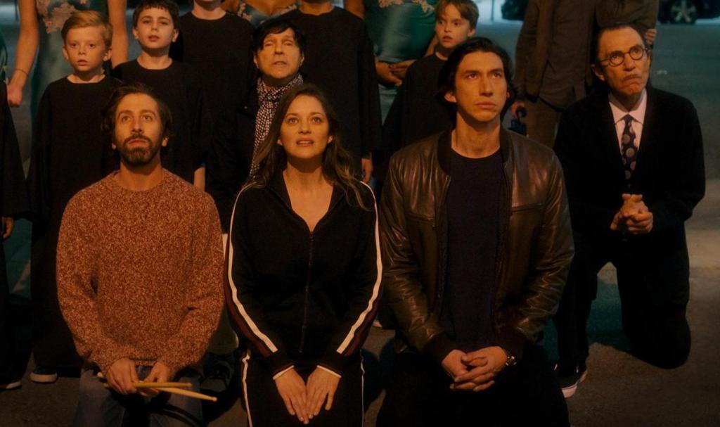 So what is Annette about? Surely it’s not just about nothing. Well, no, the most basic plot surrounds artists’ favorite subject – themselves. Adam Driver is a European film director’s idea of what a successful American stand-up comedian is. Meaning they perform avant-garde anti-humor monologues mixed with ironic musical numbers for chortling rich assholes at the Kennedy Center. I bet if you asked Leos Carax who his favorite stand up comedian was he’d say “Tom Waits“. Marion Cotillard is a personality-free opera singer which is represented much more straightforward. The Big Bang Theory‘s Simon Helberg is their accompanist friend named The Accompanist, who barely does anything. I guess they don’t need accompaniment. In fact, he’s so underdeveloped he’s forced to gives u a three minute monologue 75 minutes in, detailing his connection with the power couple and how he secretly has a crush on Marion Cotillard‘s character. None of which is evident based on what we’ve seen before. Anyway, Driver and Cotillard have a baby they name Annette, who is played by the most adorable marionette ginger baby you’ve ever seen in your life. Driver turns out to be a huge sexually abusive dick bag and their marriage crumbles as he tries to make little Annette into a child star. One scene is at the Super Bowl or something and six-year-old Annette is flown into the stadium by a drone, hanging by the neck. Point received on stage parents.