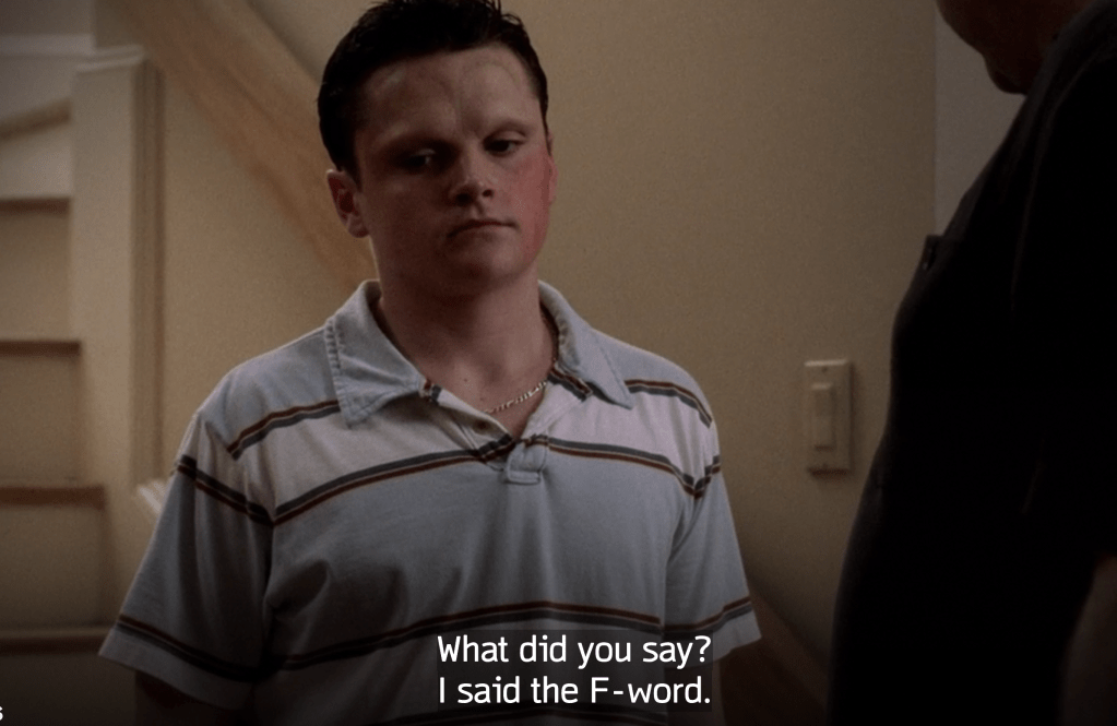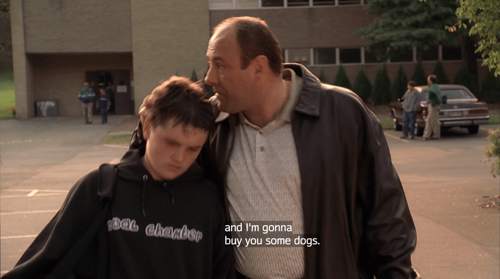 If you only knew how much time I spent desperately trying to NOT make this my worst episode of all time. It’s just the only one where the A storyline simply doesn’t work. Originally it was supposed to be about Paulie instead of Silvio reacting to the Native American protests against Columbus, and that would have been funnier, and would make a lot more sense given his track record for weird, seemingly unwinnable arguments. This somehow feels like Sopranos doing a very special episode about Columbus Day and that just doesn’t jive with the tone of the show, especially the much darker and nihilistic tone the fourth season in particular sets. The one saving grace is the beginning of the disgusting Janice/Bobby romance which displays some amazing acting from both Aida Turturro and Steve Schirripa. C+