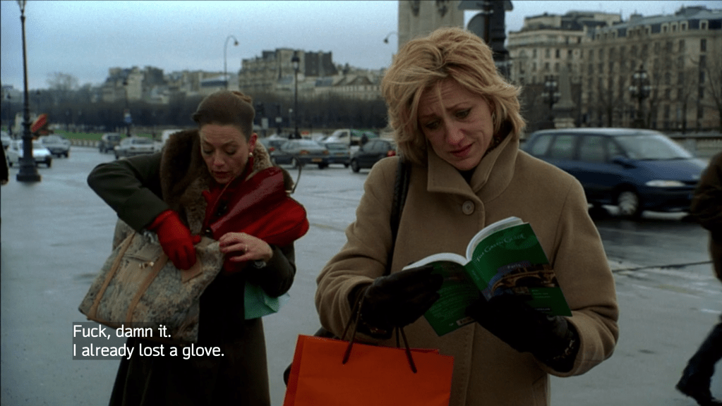 The better of the two “Christopher Goes to Hollywood” episodes, and honestly the funniest. Chris and Little Carmine, an inspired pairing of buffoons, try to get Sir Ben Kingsley to do their shitty Cleaver movie and end up beating and robbing Lauren Bacall. Back in Jersey, Frankie Valli is whacked and Artie and Tony’s relationship implodes when he gets mixed up with a French con artist. This is a real standout performance by John Ventimiglia. B+