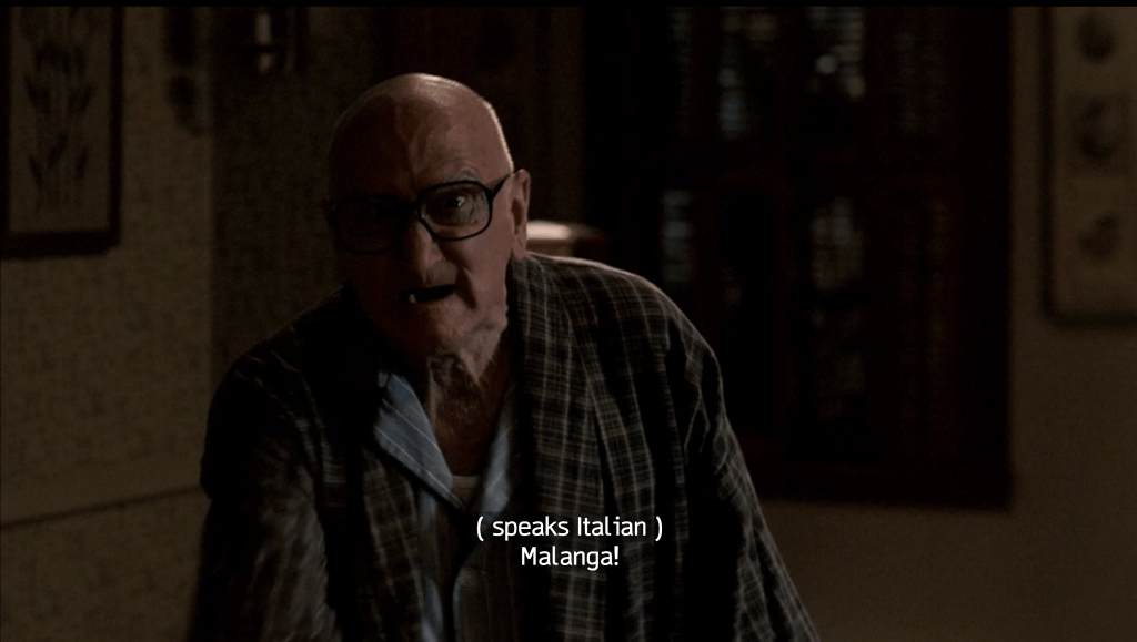 Not quite as after-school special-y as Boca, Meadowlands‘ main story with AJ fighting at school and finding out about his dad via Meadow (from that awfully dumb website with the Tommy Gun bullet holes and the wiseguy string music) rings a bit inauthentic. I mean how can you listen to that kid’s line “Nobody won. It’s a draw!” and not laugh your dumb ass off. Also, don’t know if it’s this episode or Down Neck but the N64 controller acting from James Gandolfini and Robert Iler is just terrible. This episode gives us our very first surreal dream sequence involving getting a boner from your mother while she turns into your shrink and the death of former DiMeo family crime boss, Jackie Aprile, Sr. Bye Jackie, we hardly knew ye but we’ll get to know your shitty kid a couple seasons later. B