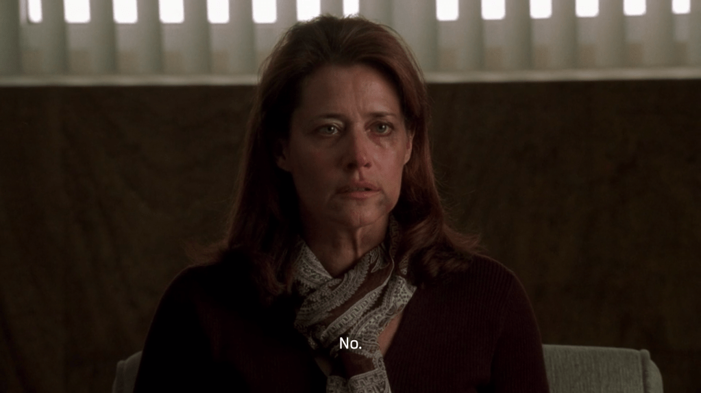 Perhaps the most notorious, controversial and talked about Sopranos episode surrounds the brutal and unexpected rape of Dr. Melfi at the hands of some random asshole. It’s one of the most difficult to watch episodes and you really don’t understand its purpose other than showcasing Lorraine Bracco‘s incredible range until the very end. Melfi is presented with a monster of a moral dilemma after the police let her her rapist go. Does she get street justice by telling Tony about it or does she not tell Tony, not get justice, but doesn’t become responsible for the torture/murder of a human, no matter how awful that human is. The ending sees Tony ask her if there’s anything she’d like to tell him. Melfi takes a huge pause and we, the audience, want nothing more for her to say yes so this son of a bitch can pay. But she says, “no” because she realizes the ramifications of getting justice that way. The ending chastises us in a way for wanting mob justice, no matter how completely deserving the victim would be. It’s pretty brilliant. A
