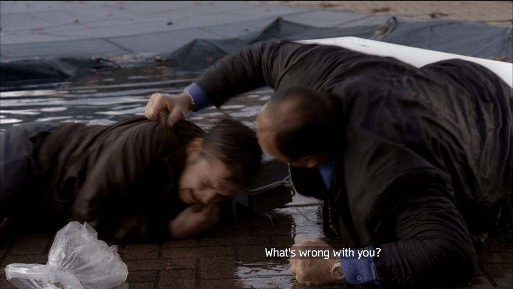 Controversial choice for #1, I know, but having watched this series seven to ten times (seasons 1-3 more than 4-6 tbh), this is the episode that sticks out to me as the most scene-by-scene perfect. Chase had no idea Sopranos would become the monster hit it eventually became and therefore wrote the final episode of the first season to be the final episode of the show, period. Everything important gets wrapped up in satisfying ways – most importantly, Tony’s relationship with Livia and Junior, his mother and uncle. After the FBI spills the beans about them trying to have Tony killed, Tony makes moves against Junior that kills his guys and lands him in prison. Tony also visits Green Grove to confront his mother which ends in him legitimately trying to suffocate her with her own pillow. Livia also tries to kill Tony once again by convincing Artie that Tony burned down his restaurant, so Artie confronts him with a sniper rifle in a parking lot. Carmela finally tells off Father Phil, saying he’s a creep obsessed with the “whiff of sexuality” and preys on spiritually thirsty married women. Yeah! Fuck Father Phil! Meadow almost gets to third base with her Dominican boy toy and Paulie gets a bad case of poison ivy to the faccia. Also the screenshot, yeah it’s graphic and gross, this used to scare the shit out of me as a twelve year old! It’s Jimmy Altieri, the rat that took the rap for Pussy, shot in forehead, with an actual dead rat stuffed in his mouth. This is the Soprano family’s idea of a subtle message about the consequences of informing. What is subtle though, is that wonderfully quiet and intimate ending. The family is trying to get over to Aunt Barb’s house for dinner, but a storm outside is too intense to keep driving. They pull into Artie’s restaurant and have a meal. Tony makes a toast to the family about remembering the good times. That was going to be the end of the entire series and in that worst case scenario where it was, not a bad way to go out at all. A+