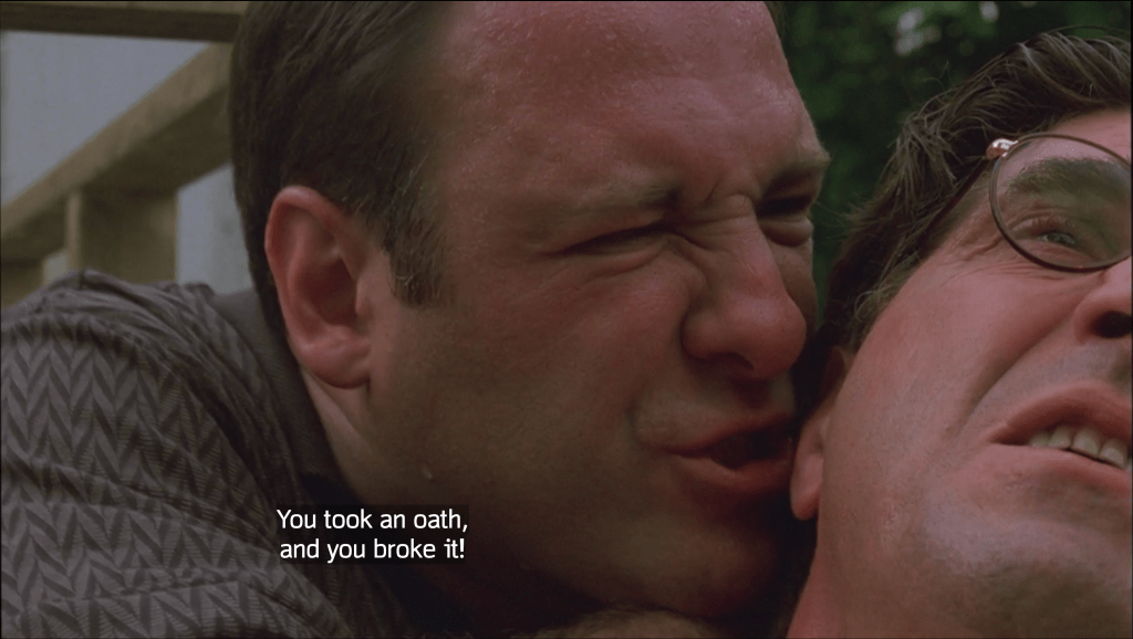 Slightly better than Isabella, but not as flashy, is Nobody Knows Anything, the first of those three final Season One episodes. Detective John Heard (Emmy nominated here) gives Tony intel that his best friend and soldier, Pussy Bonpensiero, is working with the FBI. This sends Tony’s entire world into a tailspin and what we get is an insanely intense interrogation episode where Tony is trying to get to the root of why this man he loves and trusts would betray him. Tony also reckons with himself heavily in this episode as it is the precipice of his downward spiral in Isabella. It also gives us maybe John Heard‘s best screen performance as a crooked cop. You might remember him as Peter McCallister from Home Alone. R.I.P. A+