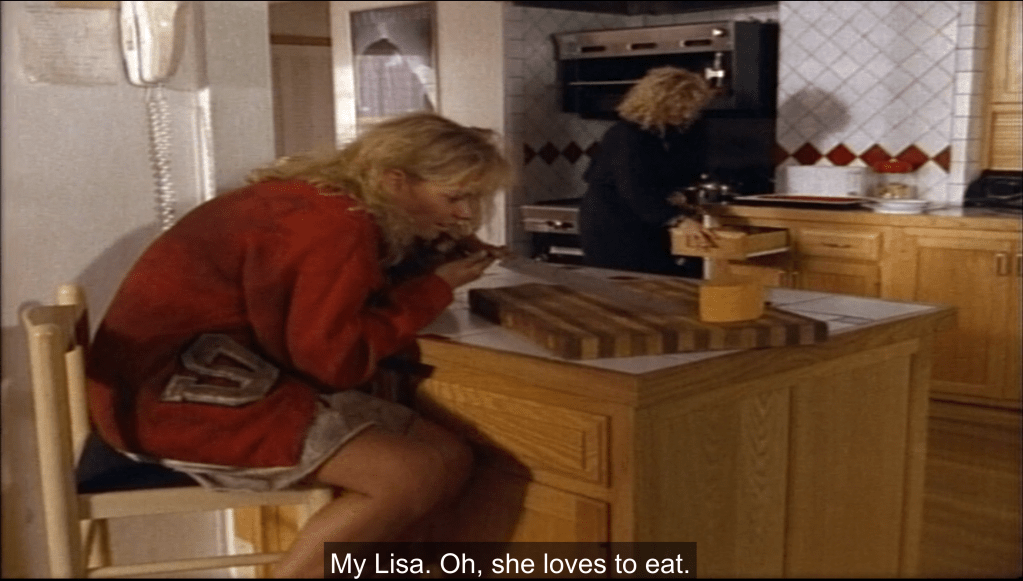 Oh, Jesus Christ, the second half. First of all, no one ever knows where their kids are in this episode. And this mom can’t even know where her daughter is WHEN HER DAUGHTER IS STANDING RIGHT IN FRONT OF HER. Instead, she believes her daughter is…a woman who looks nothing like her and enjoys playing with the largest knife that currently exists. “My daughter, not my daughter, loves to poke a huge block of cheese with her favorite Large knife. I love my daughter.”