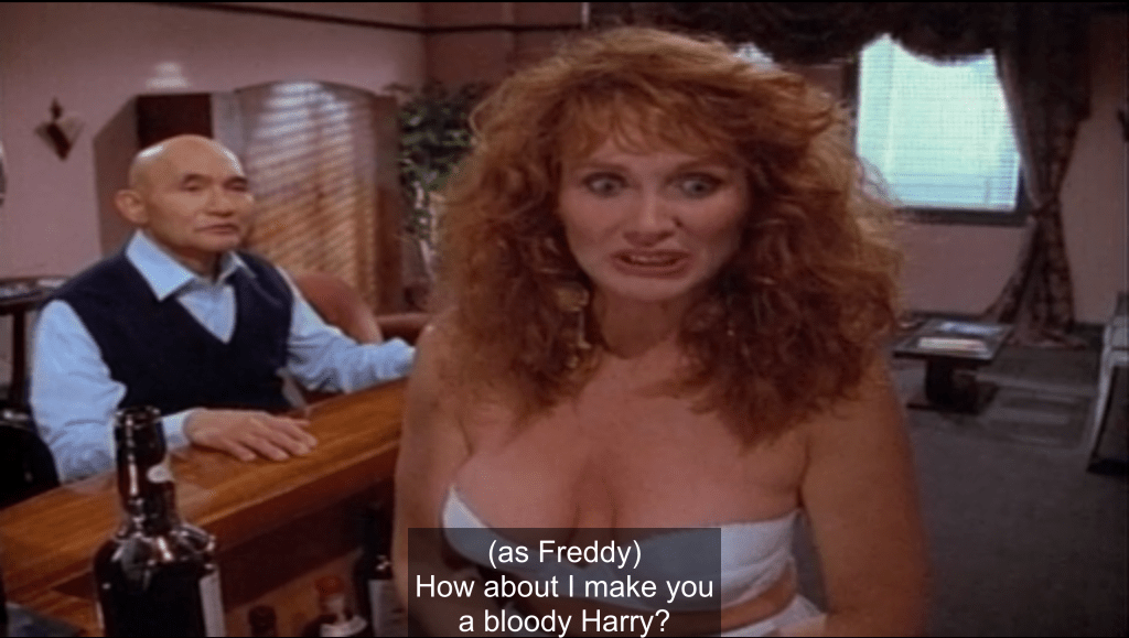 However, the psychic is also being possessed by Freddy Krueger, so Dr. Harry Lee ends up getting his throat sliced with a broken vodka bottle. This is done with the stupidest pun of maybe the entire series, Dr. Harry Lee asks for a Bloody Mary, to which she replies, “How about a Bloody Harry?” and slices his throat off.