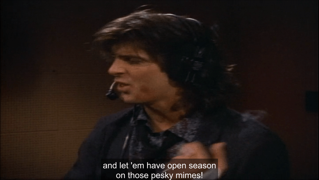 Well, Michael, I was disturbed pretty much immediately by this guy calling for the deaths of mimes everywhere on a radio station broadcast, but hey, what else can you expect from a guy who loves to say the phrase, “I say what I think, and I think what I say.” Whenever a dude on anything says that, I’m like, oh boy. Here we go. Whatever he says is going to be terrible at best and an actual fucking crime at the worst. And just like any guy in this situation, he’s got a boss who’s like, “I love that you’re terrible! In fact, I want you to be MORE terrible!”