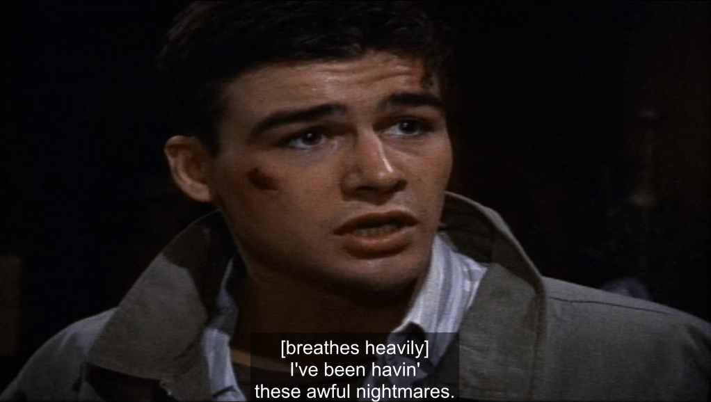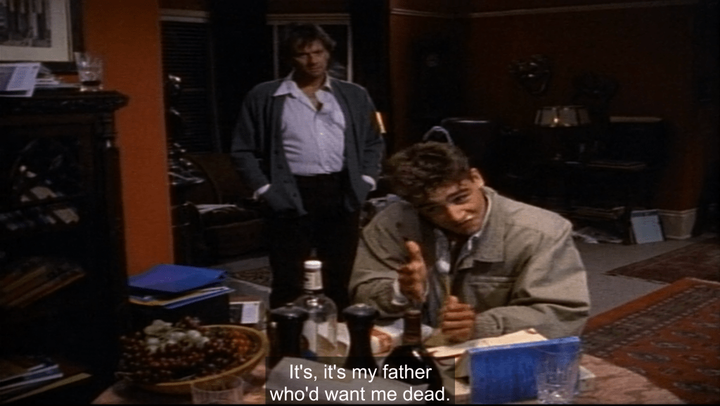 A guy is gambling, and he doesn’t have the money and a guy comes to his house PISSED AS HELL he’s missing dinner with his family to threaten the gambling man by strangling him with a phone cord. Yikes! Enter: His sister. And this is where my “what the fucking hell man” exclamation ALSO arrives, because FOR THE WHOLE EPISODE I THOUGHT THIS WOMAN WAS HIS GIRLFRIEND. Because she ACTS like his girlfriend and he has DREAMS about BEING ROMANTIC WITH HIS SISTER, ALSO.