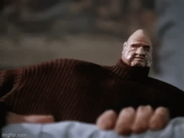 Anyway, the puppets find their way into the hands of a young surfer bro scientist, his nice girlfriend, and their two insufferable academic friends, when the young surfer bro scientist inherits this old hotel the puppets live in. Apparently, Science Surfer is doing very parallel work to what Andre Toulon did, because by Puppet Master 4, Toulon has evolved all the way from modest toymaker to groundbreaking physicist. The puppets immediately take a shine to the science surfer and his girlfriend but are to nobody’s surprise, annoyed by the insufferable academics. Eventually, the Totems break into the hotel, kill the insufferable academics and start shit with the puppets. The puppets kill them with the help of Toulon, who has manifested his spirit in a new puppet called Decapitron, and as a result, the Jawas controlling them implode on themselves and Sutkeh gets super pissed. “Noooooo! I’ll get you next time!” Sutkeh more or less says. Puppet Master 5 is basically part-two of this story.
