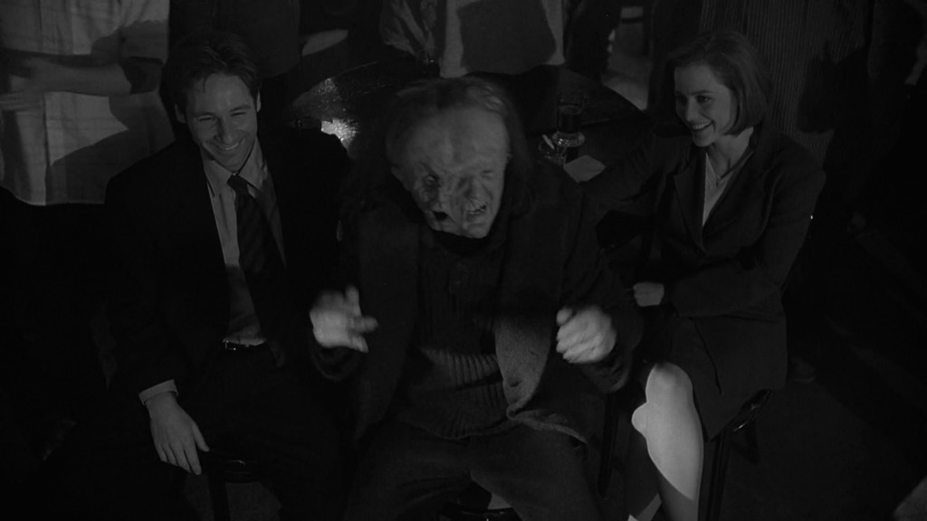 This classic Universal Monster Movie-inspired episode is basically 1931’s Frankenstein but if Frankenstein loved Cher and Jerry Springer. Shot in beautifully campy black and white and featuring J. Peterman (John O’Hurley) as a power-hungry geneticist toying with the laws of God and man, this is certainly one of the lighter and more humorous episodes of the show that still delivers the timeless message of not judging people by their personal appearance, something my dad taught me when I was young. It all culminates in Mulder and Scully taking the monster to see a Cher impersonator perform that’s equal parts hilarious and heartwarming. 9/10