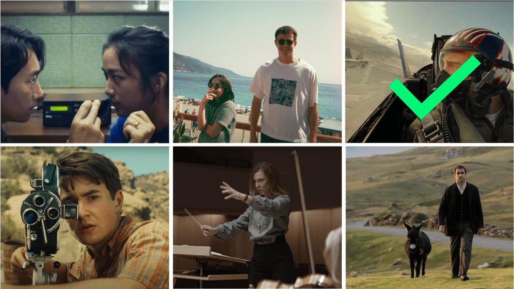 This was a tough category to narrow down to six nominees cause everything looked so hot this year. As much as I didn’t appreciate the narrative and character hollowness of All Quiet on the Western Front, it was gorgeous to look at. Longtime Spielberg collaborator Janusz Kamiński made The Fabelmans just glide across that screen, and Top Gun: Maverick practically made us launch out of my seat in excitement. Nolan cinematographer Hoyte van Hoytema lent his brilliant eye to Jordan Peele‘s unique alien epic, Nope, while Florian Hoffmeister perfectly captured the uncomfortably rigid world of Lydia Tár. However, no movie looked better than the South Korean erotic thriller Decision to Leave with Kim Ji-yong‘s cinematography being as much a character in the film as the two star-crossed lovers at its center.