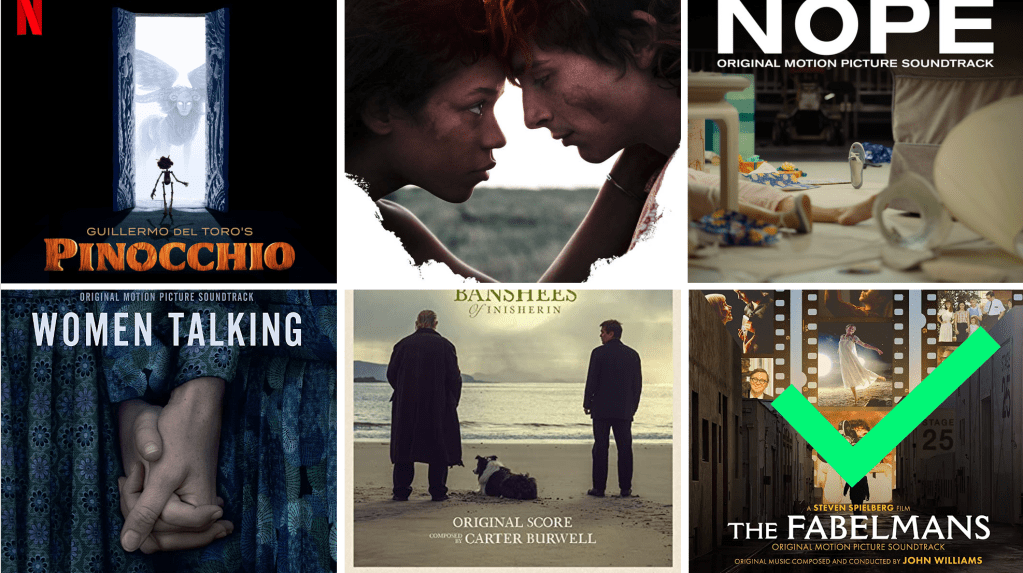 2022 may not have been the best year for movies but it was the best year in recent memory for original music scores. Narrowing this list down to six was a real pain in the ass, but here’s what I came up with. Trent Reznor and Atticus Ross‘ minimalist work on Bones and All really compliments it the odd and creepy feel of the movie without overpowering anything. Carter Burwell really captures the tight wire comedy and tragedy balancing act of The Banshees of Inisherin, while Michael Abels creates a subtler and more layered score than his work on Peele‘s Get Out and Us. As much as I thought Women Talking was lacking passion and naturalism as a film, Hildur Guanadottir‘s rousing score was absolutely undeniable. In any other year Alexandre Desplat would run away with this award for his enchanting Pinocchio score which really runs the gamut of emotions, much like the film, but this year there was no way I could not give it to John Williams for The Fabelmans, in which he gifts us his best score in possibly a decade.