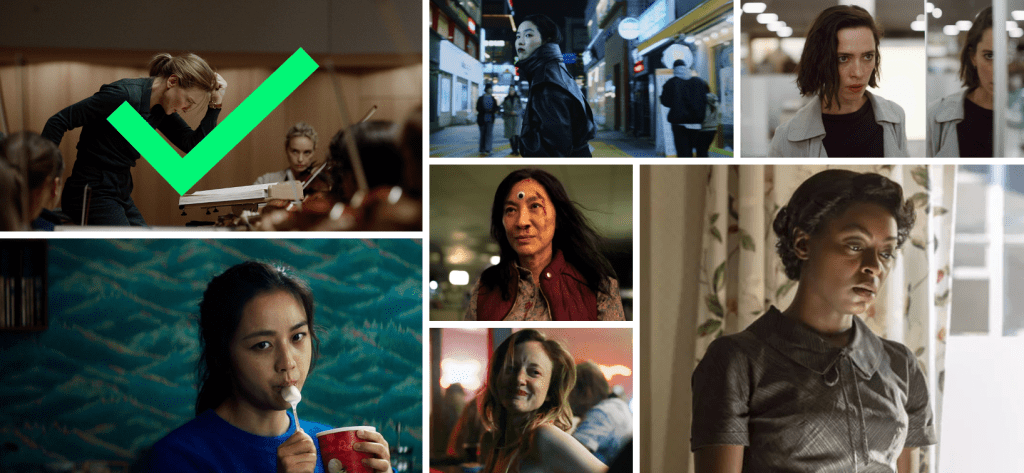 One of the least talked about great performances of the year was Rebecca Hall in Resurrection. No big surprise it got snubbed, it’s a horror movie currently streaming on Shudder. She’s phenomenal and it’s her best role yet, but it’s a really disturbing film and the furthest thing from an “Oscar movie” I can think of. First-time actor Park Ji-Min creates a fascinatingly complex central character in the under-seen Return to Seoul, one of the most impressive acting debuts I’ve seen in years, while Tang Wei delivers equally complex work as well as the absolute sexiest performance of the year in the year’s sexiest movie, bar none. Michelle Yeoh is the favorite to win the Best Actress Oscar and that’s totally fine by me, she’s the best part of an already great movie and manages to give us awesome martial arts stunt work on top of a compelling, reduce-you-to-a-puddle-of-tears type of performance. Andrea Riseborough has gotten a lot of shit for her nomination because her movie didn’t put up $1 Million in campaign funds and she knocked Viola Davis off the nomination list. Riseborough more than deserves to be there though, she delivers one of the most heartwrenching portraits of an alcoholic I’ve ever seen, but while we’re on the topic of great performances that didn’t get nominated, Danielle Deadwyler is even better in Till. She holds that soapy TV movie together with a performance her film manages to work against. The best performance I saw all year though, supporting or leading, TV or movies, was Cate Blanchett‘s extraordinary turn as Lydia Tár in TÁR. I’ve already talked way too much about this already, so if you’d like to know more visit my Top 25 Film Performances of 2022 list.