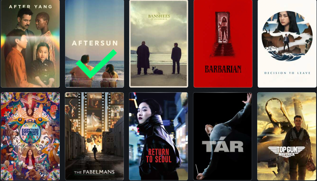 It was a tight race between TÁR and Aftersun, but eventually I listened to my heart. You can read about these movies here.