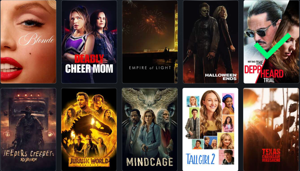So much garbage this year but the one that really stood out as the worst of the worst was the Tubi Original Movie, Hot Take: The Depp/Heard Trial which manages to be even more irresponsible than Andrew Dominik‘s Blonde. It was rushed into development during the trial and 90% of the script is verbatim court transcripts or leaked video recordings of the two. The performances are abysmal and you spend a full hour going back and forth wondering if the “movie” is taking Depp’s side or Heard’s side before you realize the movie isn’t taking sides at all. It’s just vomiting crap at you. Audrey Farnsworth, who I suffered through this movie with, said it best, “A parasite has crawled into my ear and made me forever ill. That parasite is Hot Take: The Depp/Heard Trial.” I can’t recommend you watch this because after it’s over you’ll feel ashamed of yourself.