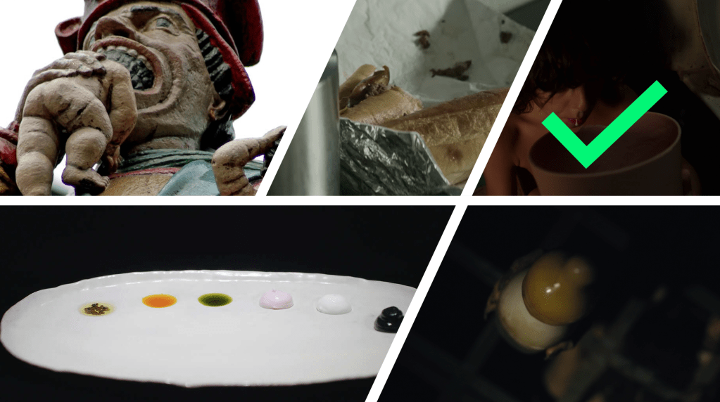 Wow, lot of weird food moments this year including the basketball player from Hustle running up Sandler’s food budget by eating a single bite of five different cheesesteaks to Ralph Fiennes‘ refusal to serve his guests bread but instead an empty bread plate with six different dippin’ sauces. The living baby that gets eaten in Resurrection is only talked about but never shown, while mommy’s hairy bottle in Barbarian literally comes flying right into frame. The most disturbing and weirdest of these food moments was in David Cronenberg‘s Crimes of the Future, where cyborg people ate plastic. It’s simple, I know, but something about watching people chomp on plastic bathroom garbage bins like it’s a submarine sandwich is just so fucked up it made me gag.