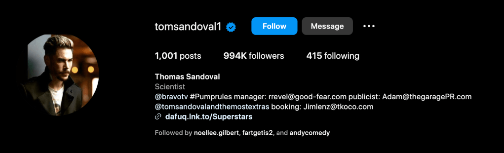 Sorry I didn’t mention Ariana once during my Season 9 review, but she really didn’t do shit that season. This season, especially during the reunion, she’s the Meryl Streep of VPR, she’s the goddamn star, light, camera, action on this lady – she’s not taking any more of your crap, Sandoval! Folks, we’ve been waiting years for a VPR flare up like this, and #scandoval is reality show herpes at its finest – a good old fashioned cheating scandal that gets grosser and more sore with every layer that gets picked away. Tom Sandoval, you fucking worm…with a mustache. For a decade you tricked us. We knew you were scuzzy but this was beyond the pale. You manipulated so much and you were so good at it, you sick little devil. He’s like the Keyser Soze of reality tv show villains, just working his dark magic behind the curtain and all the while crying at Pride post-Orlando shooting, tricking us into thinking he’s such an empathetic soul. You dirt bag, Sandoval. You dirt bag!!!!! Anyway, let’s rewind…