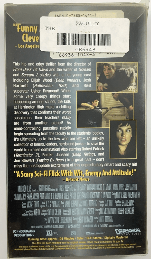 MICHAEL MARGETIS: Finding an actual good movie in this line-up is what it must feel like for a severely dehydrated person to take that first gulp of ice water. Relief rushed through my body as I pushed play on Robert Rodriguez‘s The Faculty after having suffered the entitled idiots of I Know What You Did Last Summer, the insufferable film bros of Dead Man’s Curve, and the actual incest of Wicked. The Faculty is basically just Invasion of the Body Snatchers set at an American high school. Still, it’s a familiar story executed well with interesting two-dimensional characters, an exceptional cast, and some twists and turns you might not see coming. No more teachers, no more books, the faculty are fucking aliens.