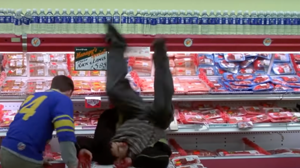 “Guy getting flown through the air in the grocery store.” This was my favorite image of the film. Just a single shot of a guy flying all the way across the screen, from one side to the other. By the products! I did a hearty laugh.
