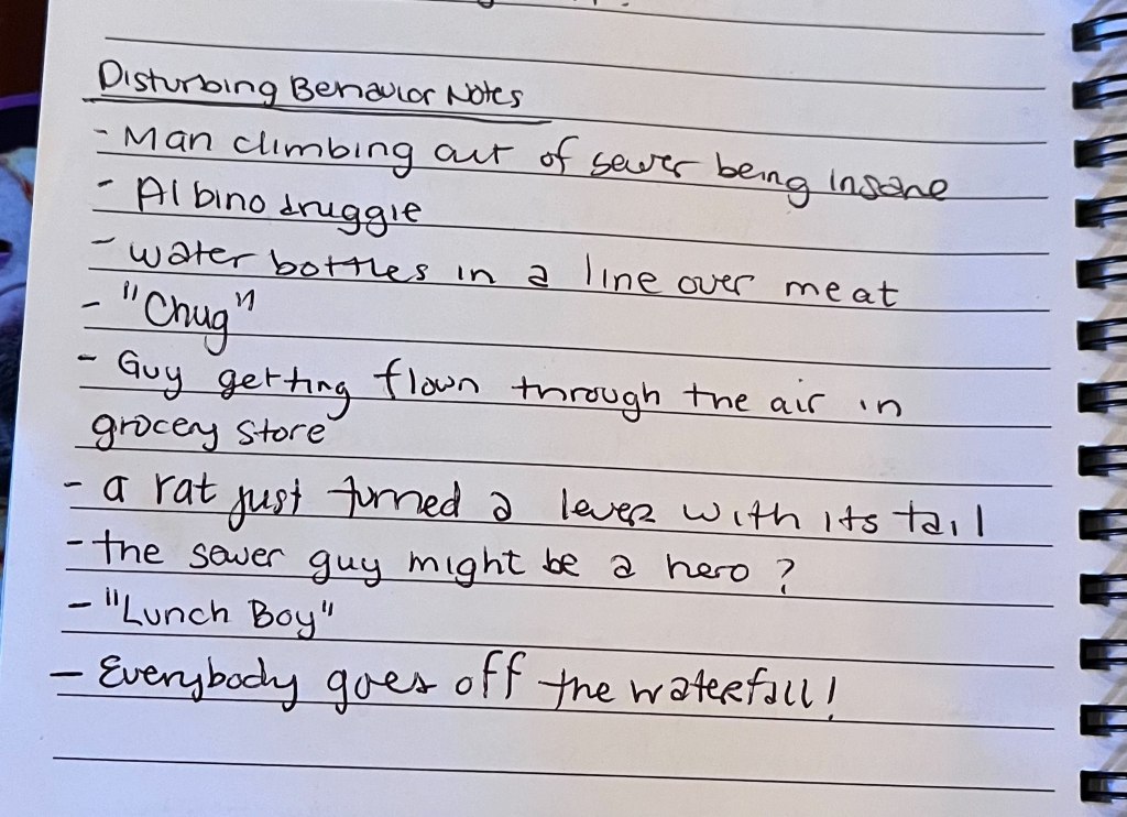 “A rat just turned a lever with its tail.” It did. And then that was the rat’s only job. Like, is it a specially trained rat? Did it do that on purpose, or was it an accident? Did a rat accidentally turn a lever with its ass in the film Disturbing Behavior? I literally have no idea.