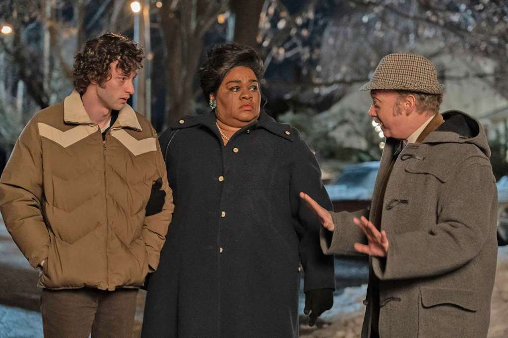 Holy shit, ya’ll, sorry, I really just jumped into this. The Holdovers is the new Alexander Payne (Sideways, Downsizing) comedic drama set at a prestigious East Coast boarding school in the early 1970s. It’s shot on film to give it that old-ass look, and the opening credit sequence is also in the style of 70s movies where the end credits are in the beginning. It is set in the 70s and feels like it was made in the 70s. Anyway, when winter break rolls around, teen student Angus (Dominic Sessa) finds out his shitty mom is instead spending Christmas with her new husband because she sucks, and he’s stuck at the boarding school. Unfortunately for him, the teacher who drew the short straw to chaperone the left-behind students is the grumpiest in the whole school – Mr. Hunham, played by human muppet Paul Giamatti. They sure don’t like each other, but not because Angus is failing his class – in another classic, coming-of-age checklist item, Angus is actually the smartest kid in his class even though his angsty attitude matches the dumb kids. They don’t like each other cause they’re more similar than they think! Also staying behind at the school is Mary Lamb (Da’Vine Joy Randolph), the lunch lady who recently lost her 19-year-old son in Vietnam and is not ready to go home and celebrate Christmas without him. It’s gonna be one hell of a Christmas break, especially when they road trip into Boston!