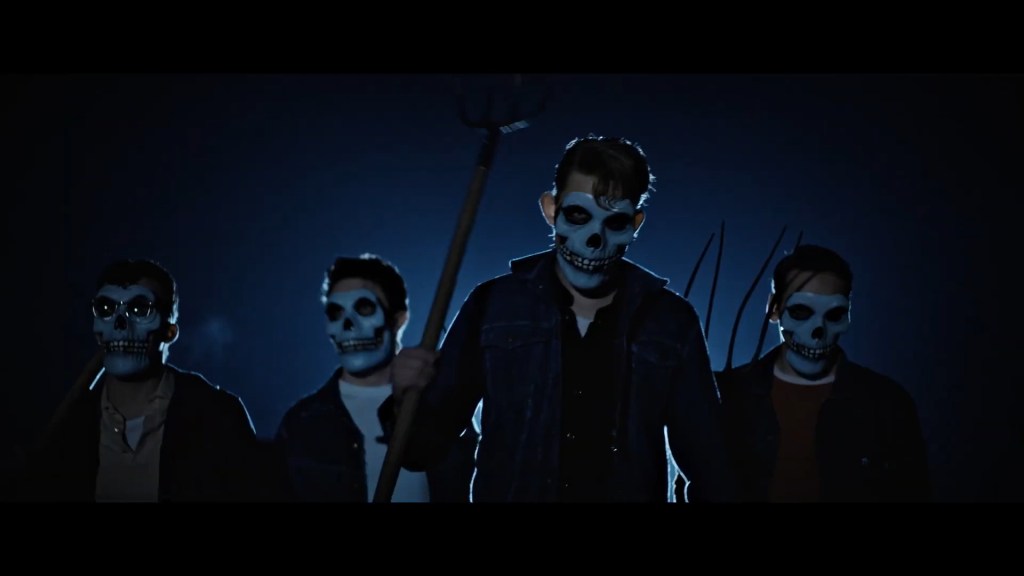 Dark Harvest is like Children of the Corn mixed with Rumble Fish and a dash of Jeepers Creepers. It takes place in a small Midwest town in 1962, following a couple of greaser teens who are competing for better lives for their families in something called “The Run”. What’s “The Run”? It’s basically a very dangerous witch hunt where the teens have to chase this ghost demon that is born every Halloween night in the town’s corn fields, who has a pumpkin as a head and loves decapitating teens. Parents starve their children for days so they..?????…have the drive to capture and murder this monster whose innards are made of treats. Yes, you read that right – treats. Like Sour Punch Straws and Twizzlers, mostly gummy and licorice candy from what I observed – no chocolate – and the winner who eventually kills SawTooth Jack, that’s the creature’s name!!, wins a new Corvette to drive out of town in (to live in a place where evil scarecrow demons don’t exist) and a big ass house with a pool and stuff for their family.