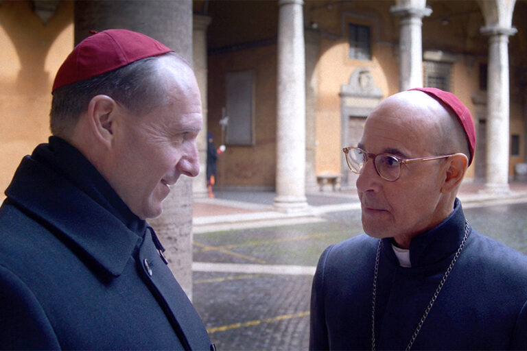 Besides the performances, this is an incredibly well-directed and gorgeously shot motion picture. Director Edward Berger, who did 2022’s remake of All Quiet on the Western Front, is in top form here, treating something as dull as a pope election like a presidential election. I never expected a movie about a bunch of popes being mildly rude to each other to practically blow the roof off of my brain, but here we are, ladies and gentlemen. French cinematographer Stéphane Fontaine, sure to get an Oscar nomination, makes every tedious ritual look fascinating and gorgeous. Everyone is excellent, with Fiennes, Tucci, and Lithgow particularly standing out, but I have two major problems with the movie.