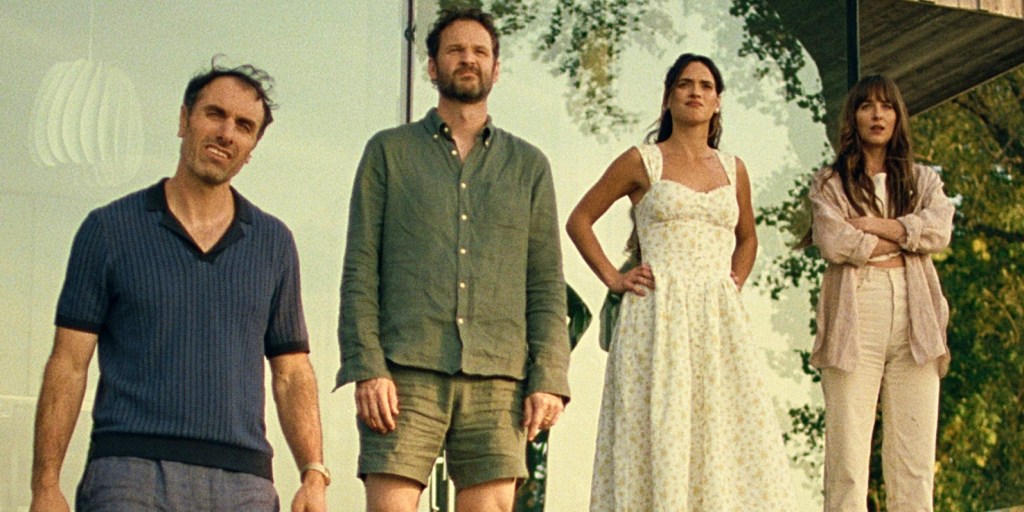 The friends are Carey’s best friend, Paul (the film’s director and co-writer, Michael Angelo Covino), and his wife Julie (Dakota Johnson). You immediately get that this couple is very fucking weird. Both of them, especially Paul, have a habit of crossing social boundaries that most people instinctively respect. They reveal they have an open marriage, and Paul claims he doesn’t care who Julie sleeps with.