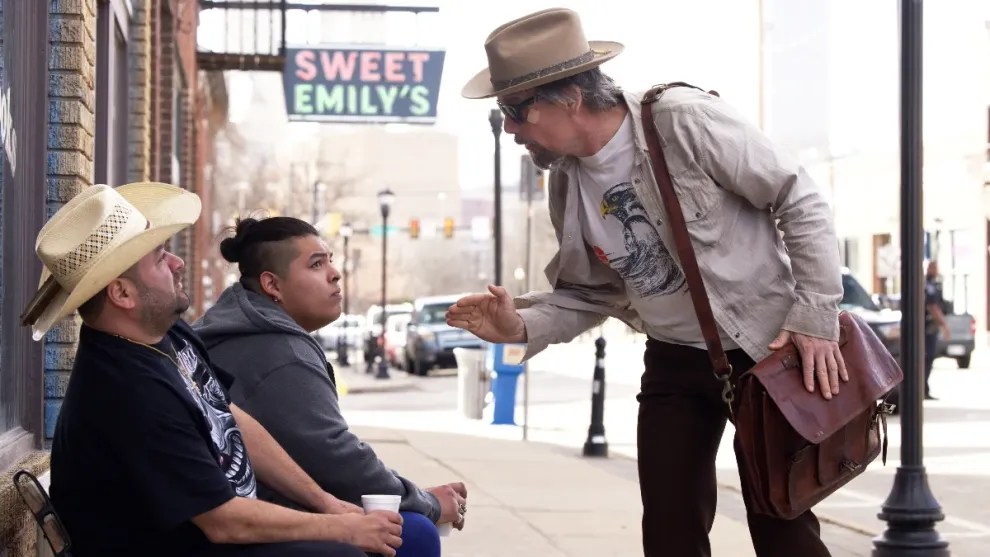 The Lowdown takes place in Tulsa, Oklahoma, where a prominent local figure, played by Tim Blake Nelson, appears to have blown his head off. Or did he??? Maybe it was murder!!! Used-bookstore owner and professional loser Lee, played by Hawke, certainly thinks so, falling ass-backwards into a conspiracy involving local politicians, land developers, neo-Nazis, an actual witch, and tribal gangs.